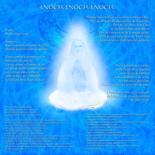 Parmi les hommes, Enoch s'est éveillé. Il a été instruit et éduqué par les mondes invisibles sacrés, c'est-à -dire par les Anges, par les Archanges et par les divinités. Il a ainsi reçu la mission de réinstaurer un chemin pour que les êtres humains et toutes les créatures de la terre puissent retrouver le monde de la vie immortelle, c'est-à-dire le monde de l'esprit. C'est ainsi qu'est née la tradition essénienne, tradition des enfants de la Lumière, Tradition née d’Enoch. Si vous lisez les textes d'Enoch, vous allez retrouver le fondement de notre enseignement et de l'enseignement de la Lumière qui s'est transmis depuis des générations et des générations.